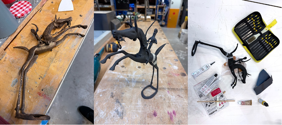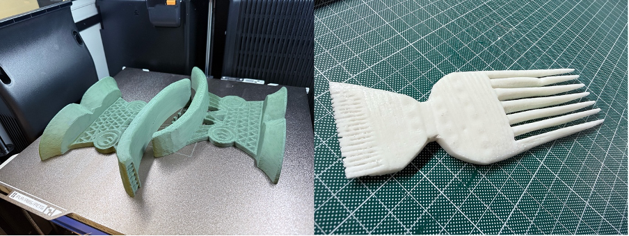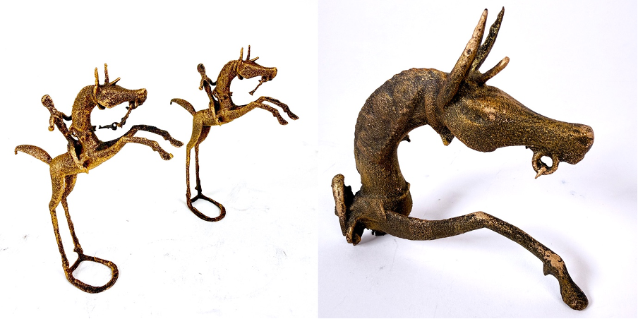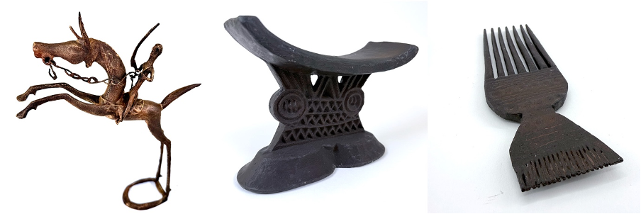 The workflow is: scan, 3d print and then authentically finish these historical items; an East African carved wooden headrest, a series of wooden hair combs, and bronze horseman sculptures. Together, these objects offer a range of material and surface qualities, from worn hardwood to aged metal, making them ideal for testing the full photogrammetry‑to‑copy workflow.