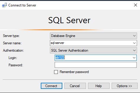 ⚫ For ‘Server name’ select ‘sql-server’.