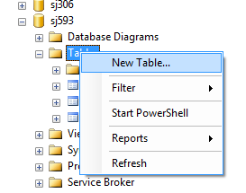 1. To create a table expand the tables node, right-click ‘Tables’ and click ‘New Table’: