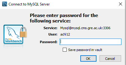 MySQL Workbench is installed on the computers in the King William labs, and also on the CMS virtual desktop. Please see the instructions below for connecting to your MySQL database in it.