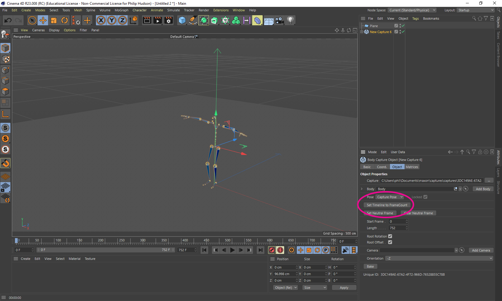 Press the play button to preview your capture moving – you may need to click Set Timeline to Framecount in the right hand panel to have the entire capture fit into the timeline.