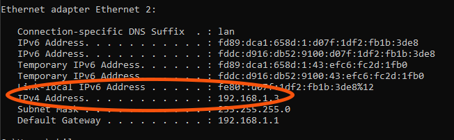 Captures are transferred to C4D over the network but C4D needs to know your network address (your IP address). You can find this on a PC by hitting the start menu and typing CMD followed by enter. Look for the numbers next to IPv4 Address; in this case 192.168.1.3