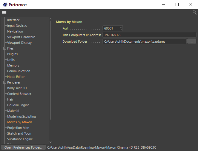 Once you have this number you must enter it into the C4D preferences – at Edit – Preferences – Moves by Maxon.
