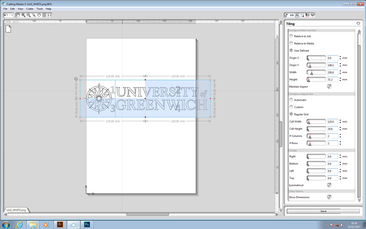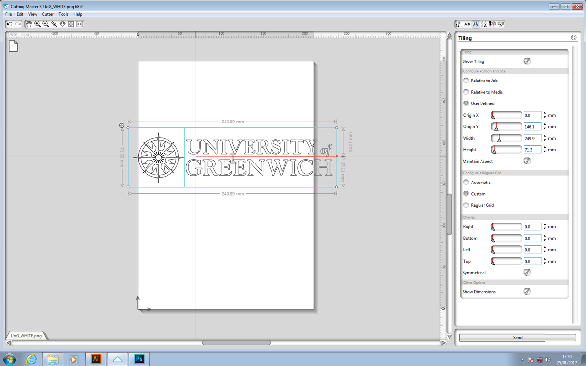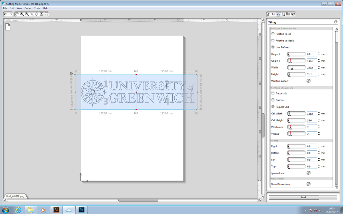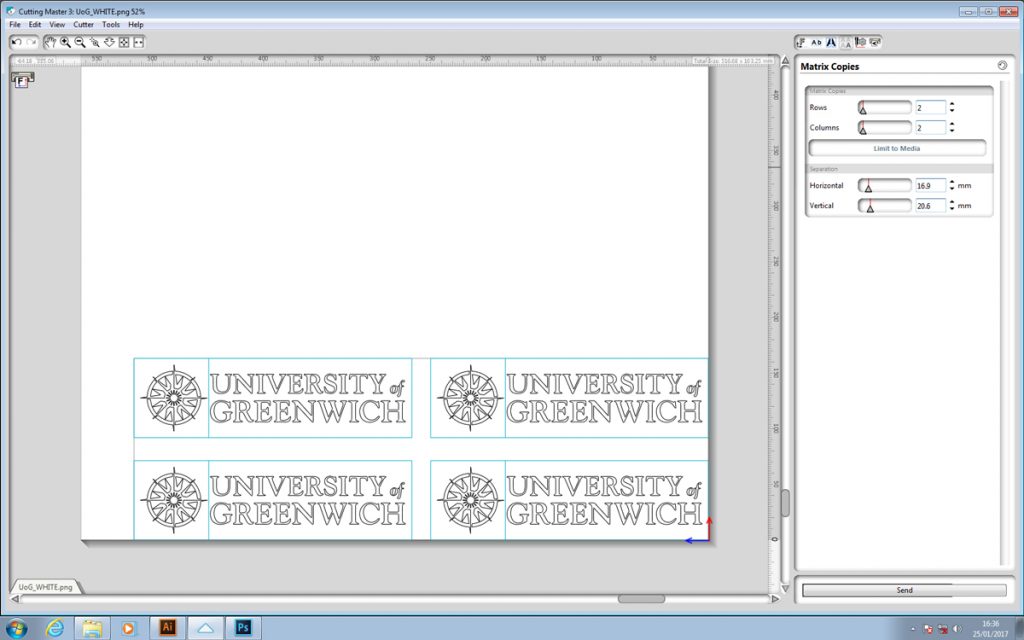 - Transfer your design to Adobe Illustrator to create the registration marks (this must be done on the vinyl cutter computer).