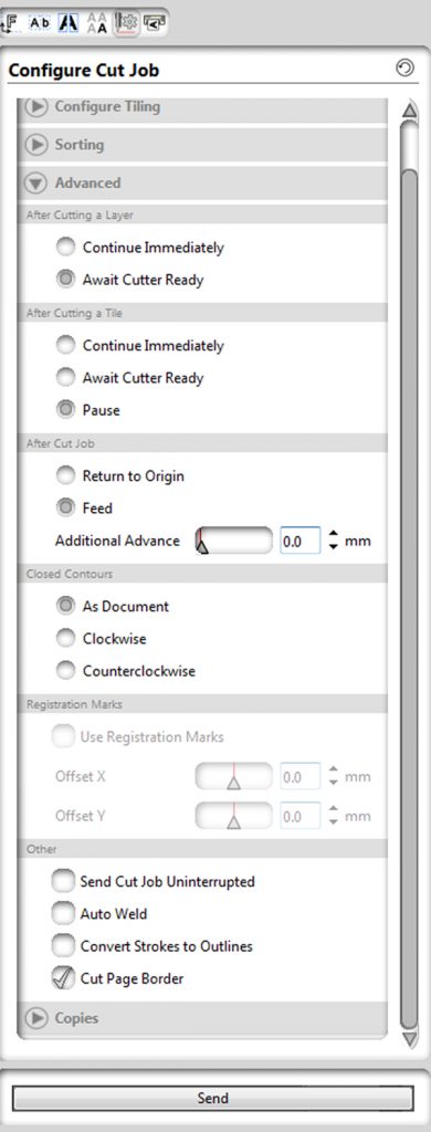 “Send cut job uninterrupted” will send all the design data to the cutter without pausing or stopping.