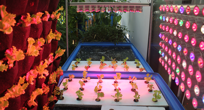 This aquaponics experiment aims to determine whether the lettuce that is being grown vertically is as productive to that growing horizontally. (Experiment by PhD student Mohammed Khandaker and supervisor Benz Kotzen investigating the potential for vertical aquaponics which is more space efficient and thus more productive than horizontal aquaponics.)