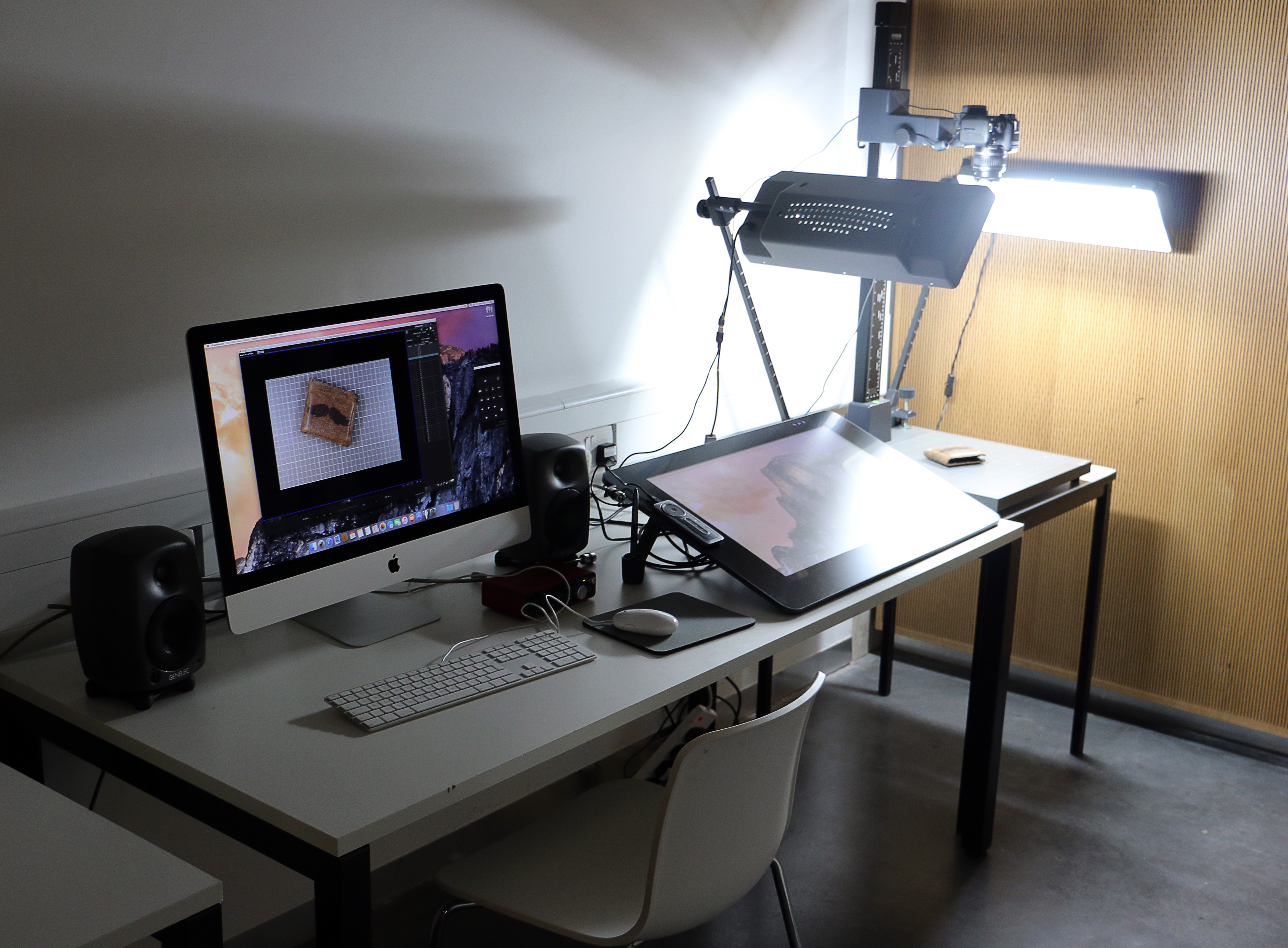 The Animation studios are located off the main corridor on the ground floor, on route to the Workshop. There are four rostrums set up for top down stop motion capture, each connected to a Mac. Each station also has a large Wacom Cintiq.