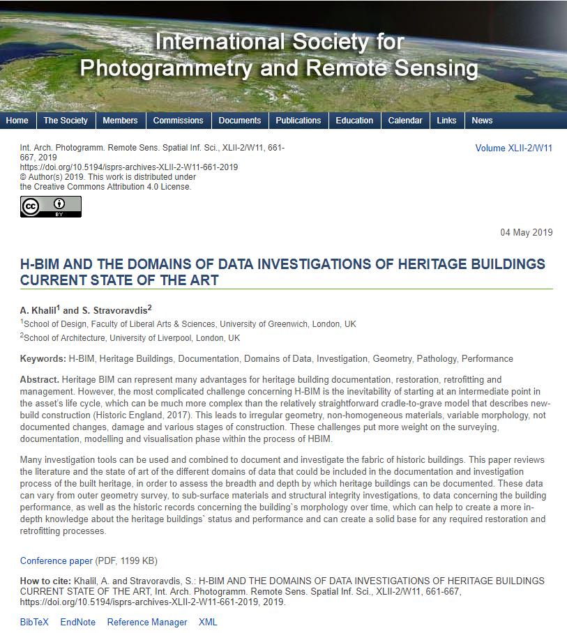 Paper is titled “H-BIM AND THE DOMAINS OF DATA INVESTIGATIONS OF HERITAGE BUILDINGS CURRENT STATE OF THE ART