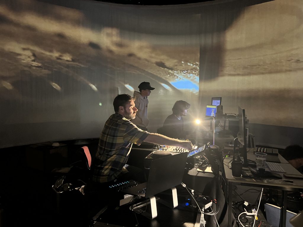 Given these challenges, and the short amount of time myself and Will had working together in the theatre leading up to the show-and-tell event, it felt somewhat miraculous that we had something to show! However, the end result felt playful, improvisatory, site-specific and, dare I say it, immersive. Having access to this kind of technology to work with is already a great privilege, but the end result is a real testament to the engaged, curious and very ‘yes and..’ approach to the support and mentorship we received from the SOUND/IMAGE team. Both myself and Will left the residency not only having learned a lot, but with renewed creative energy and the desire to play more.