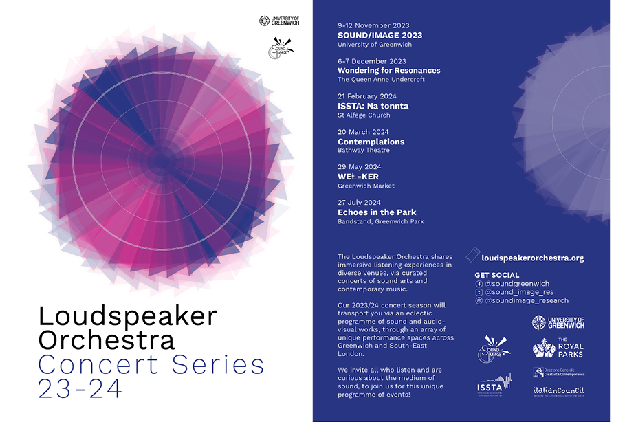 Our 2023/24 concert season will transport you via an eclectic programme of sound and audiovisual works, through an array of unique and compelling performance spaces across Greenwich and South-East London. We invite all who listen and are curious about the medium of sound, to join us for this unique programme of events!
